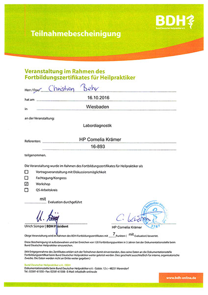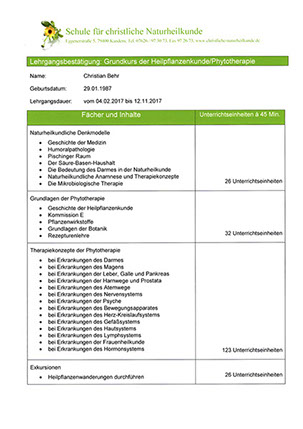 2014 Ausbildungstart zum Heilpraktiker (Schule für christl. Naturheilkunde - Bad Liebenzell)